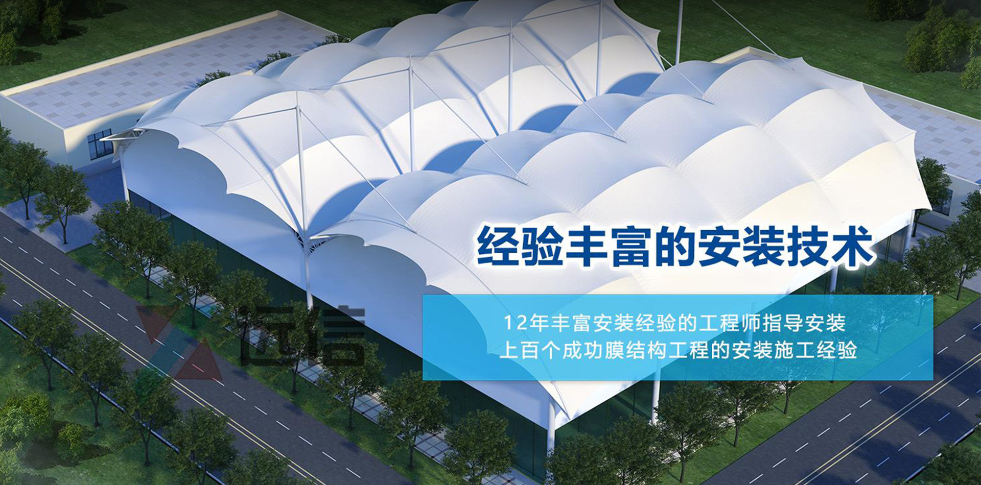 3.從結構設計上降低膜材安裝難度選用膜材均為國產(chǎn)或進口優(yōu)質膜材料,高強拉力,優(yōu)質抵抗老化涂層